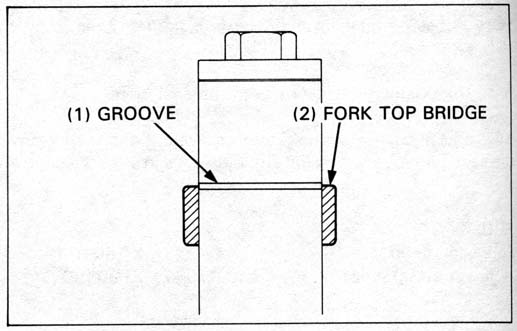 Install the fork legs into the steering stem and fork top bridge and align the groove of the fork tube with the top of the bridge.