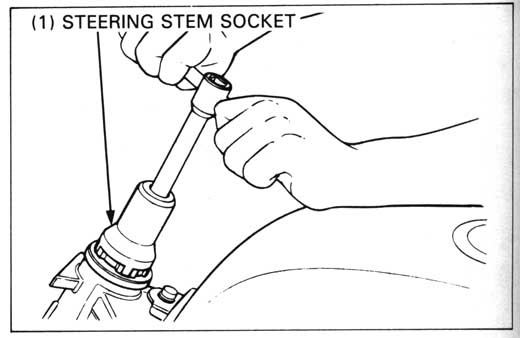 Remove the dust seal, upper bearing inner race and upper bearing pull the steering stem out of the steering head.