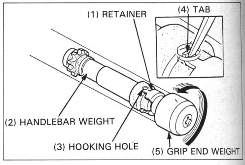 Install the grip end weight onto the handlebar weight aligning the boss with slot.