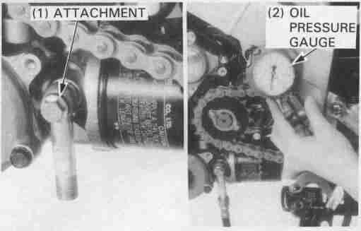 Remove the oil pressure switch and connect an oil pressure gauge attachment and