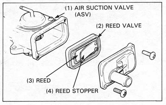 Remove the two screws, the reed valve cover and the reed valve from the ASV.