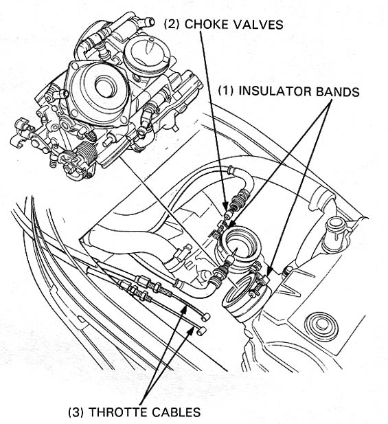 Install the carburetors onto the cylinder heads and tighten the insulator bands securely.