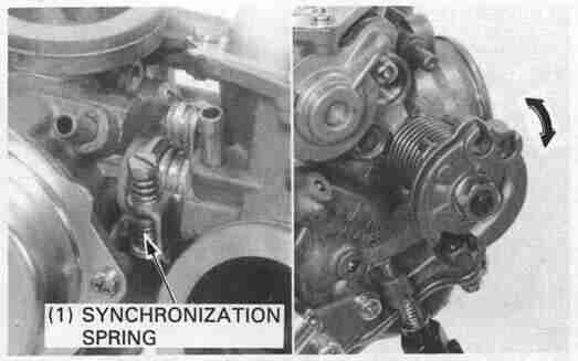 Turn the throttle stop screw to align the rear cylinder carburetor